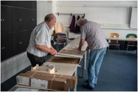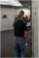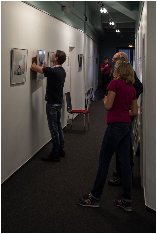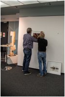 Am Samstag vor der Eröffnung der Clubausstellung trafen sich die Mitglieder in der Bremer Volkshochschule. Hier wurden die Fotos auf die Passepartouts befestigt, die Glasscheiben der Rahmen geputzt und in die fertigen Fotos eingelegt. Nach einem vorbereiteten Hängeplan wurde die Rahmen an den Nylonschnüren aufgehängt und ausgerichtet. Die folgenden Fotos geben einen Einblick, wie wir die erforderlichen Aufgaben und Arbeiten gemeinsam angepackt und geschafft haben.